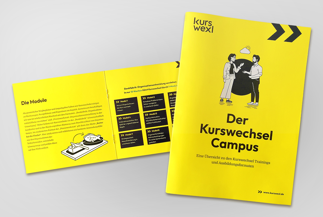 Für dialog-pr.com habe ich zwei sympathische Figuren für das Beratungsunternehmen Kurswexl entwickelt. Die beiden begleiten das Unternehmen durch sämtliche Kommunikationskanäle und treten dort als freundliche Gesichter für unterschiedliche Teams auf. Das Besondere: Dank ihres modularen Aufbaus lassen sich die Figuren vom Kunden selbst immer wieder neu kombinieren – verschiedene Posen, unterschiedliche Szenen. Der reduzierte Linienstil macht sie sofort erfassbar und fügt sich nahtlos ins Corporate Design ein, das dialog-pr konzipiert hat. Ergänzt wird das Ganze durch verschiedene Büro-Szenarien und passende Icons. Ein richtig spannendes Projekt mit vielen kleinen, kniffligen Details, die es zu lösen galt. |