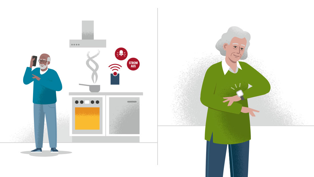 Die Bremer Heimstiftung bietet technische Assistenzsysteme an, die Senioren mehr Komfort und Sicherheit im eigenen Zuhause ermöglichen. Die Herausforderung bei diesem Projekt lag darin, komplexe Technik verständlich und einladend zu vermitteln, ohne dabei auf stereotype oder passive Darstellungen von Alter zurückzugreifen. In flächigen Vektorgrafiken habe ich zusammen mit der Agentur Medienfeld aus Worpswede, verschiedene Alltagsszenarien entwickelt, die zeigen, wie selbstverständlich sich die Systeme in den Alltag integrieren lassen. Die Figuren sind bewusst aktiv und modern gestaltet – Senioren, die Technologie nutzen, um ihr Leben komfortabler zu gestalten. |